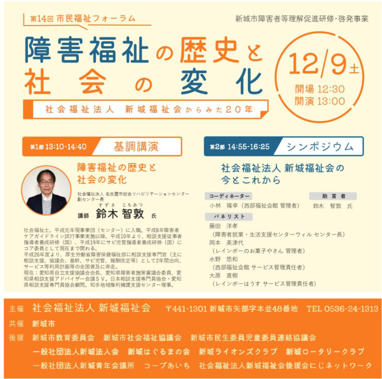 令和5年12月9日(土)13:00開演)第14回市民福祉フォーラムを新城文化会館小ホールで開催しました。
